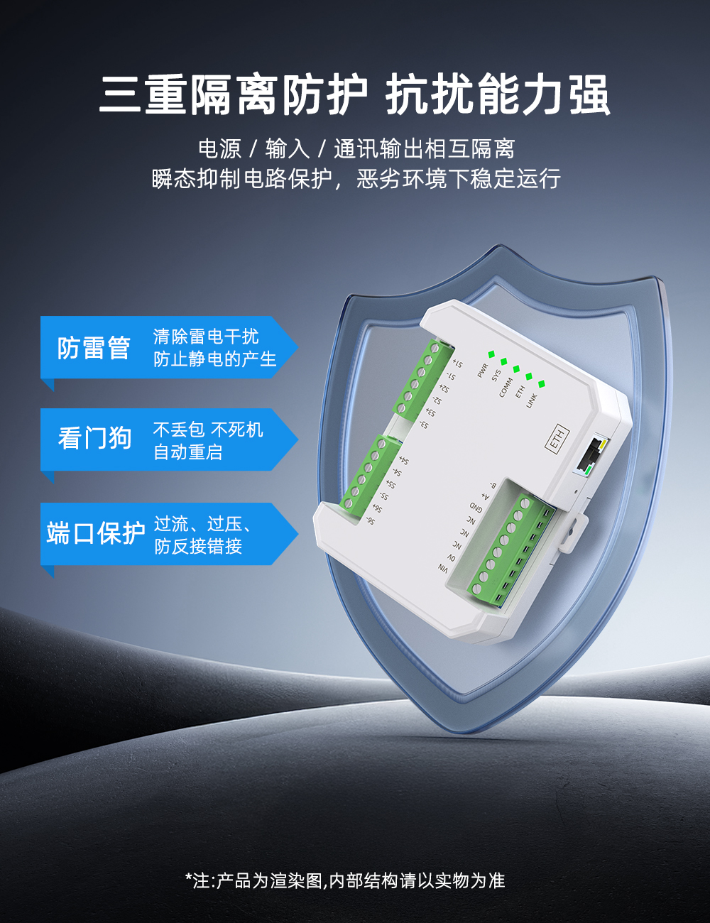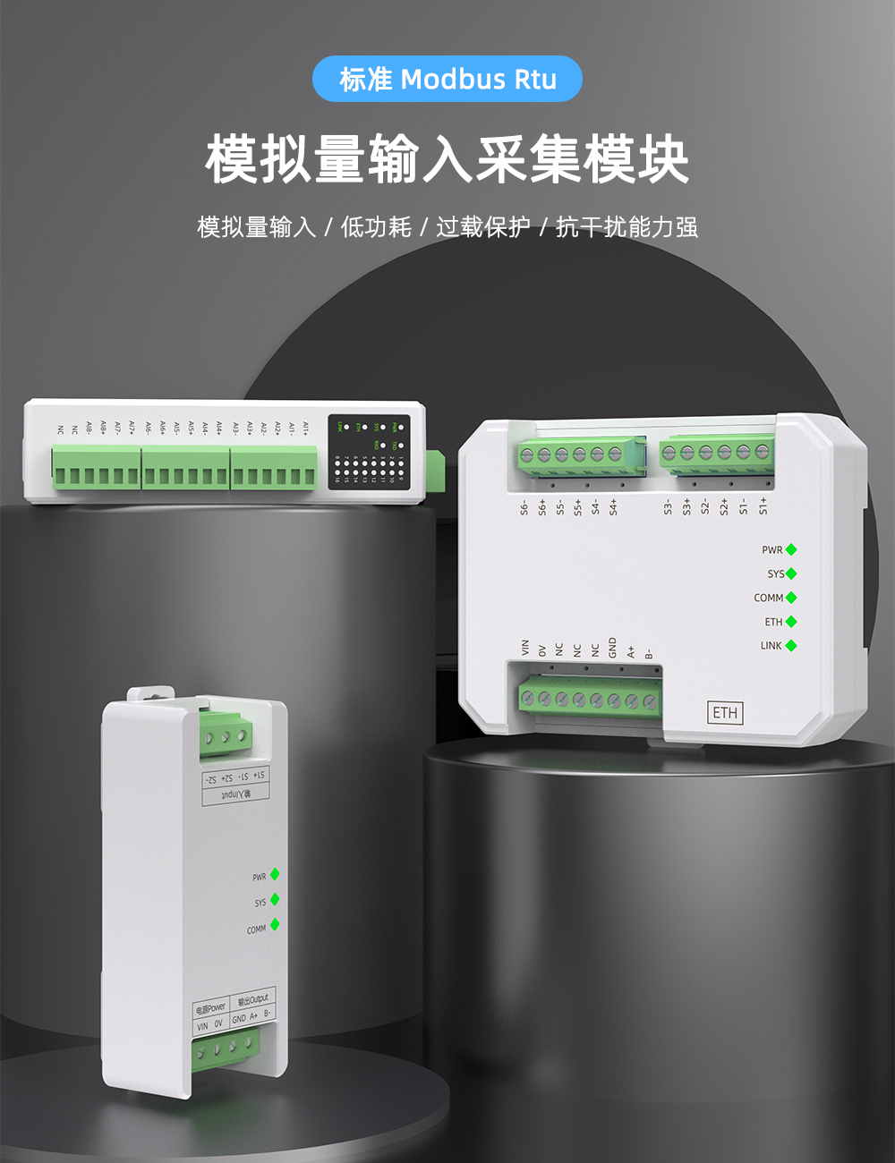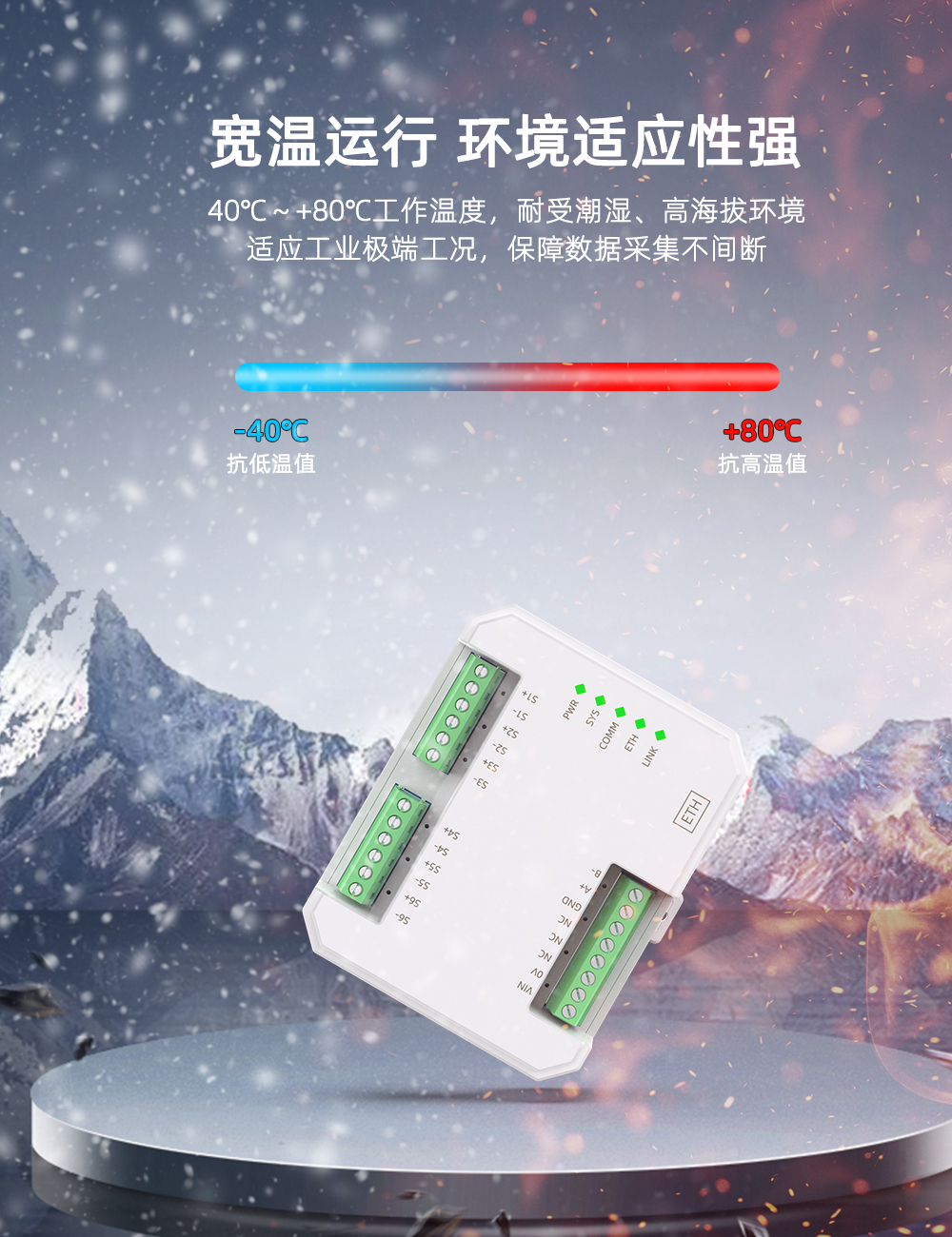 该产品需要独立供电,采用DIN35mm标准导轨安装方式,现场安装简单,使用灵活,可应对各种现场应用。