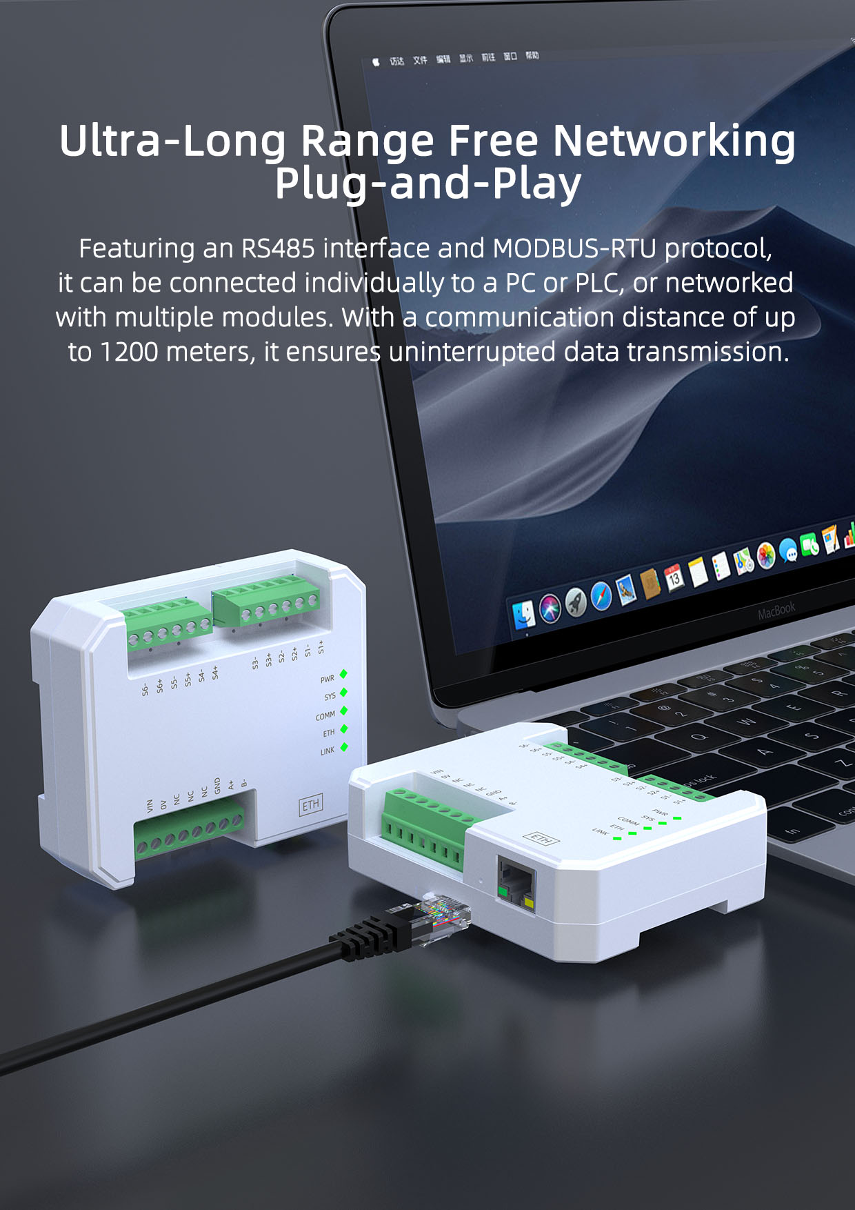 Communication Distance 1200m (RS485 typical)