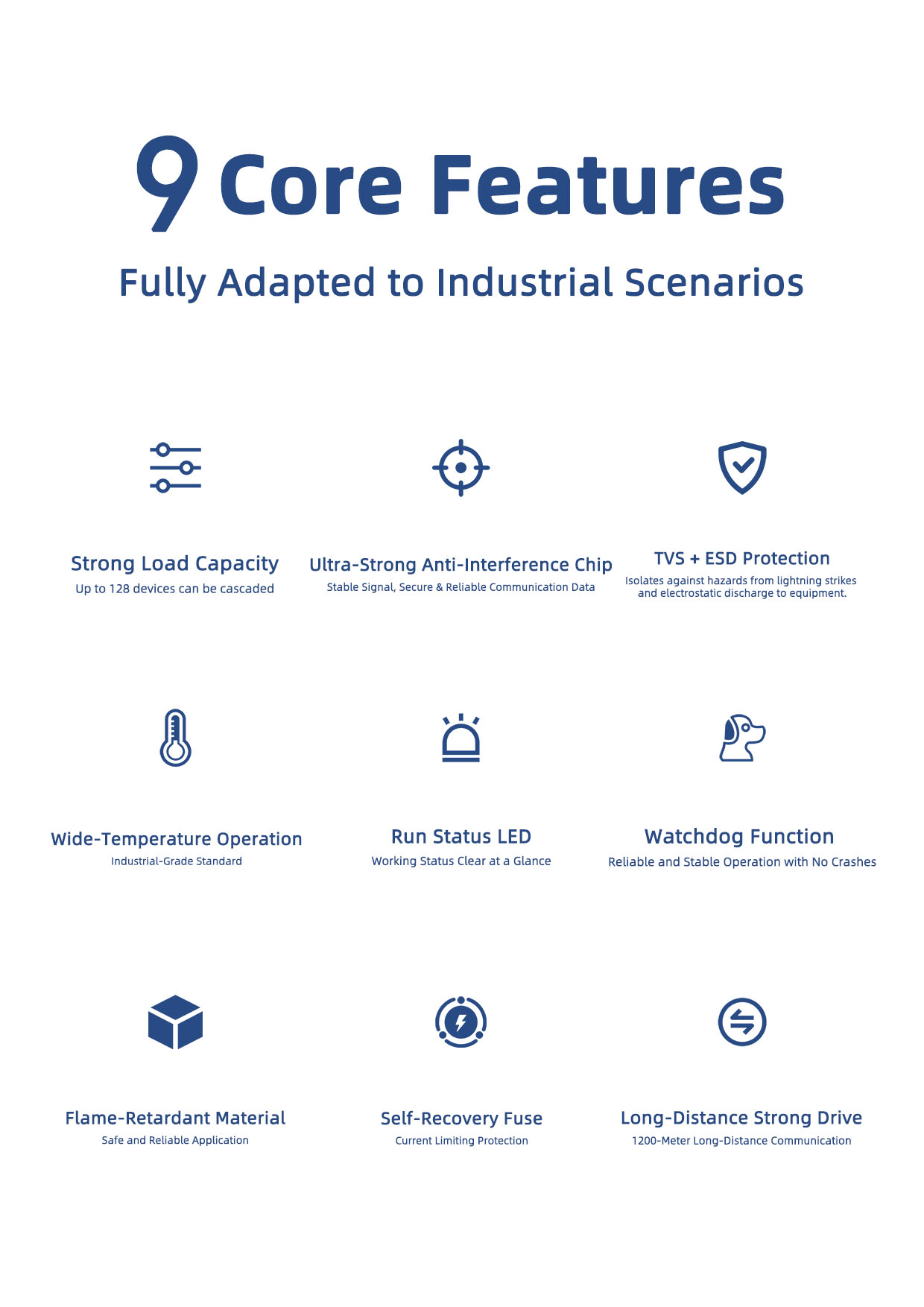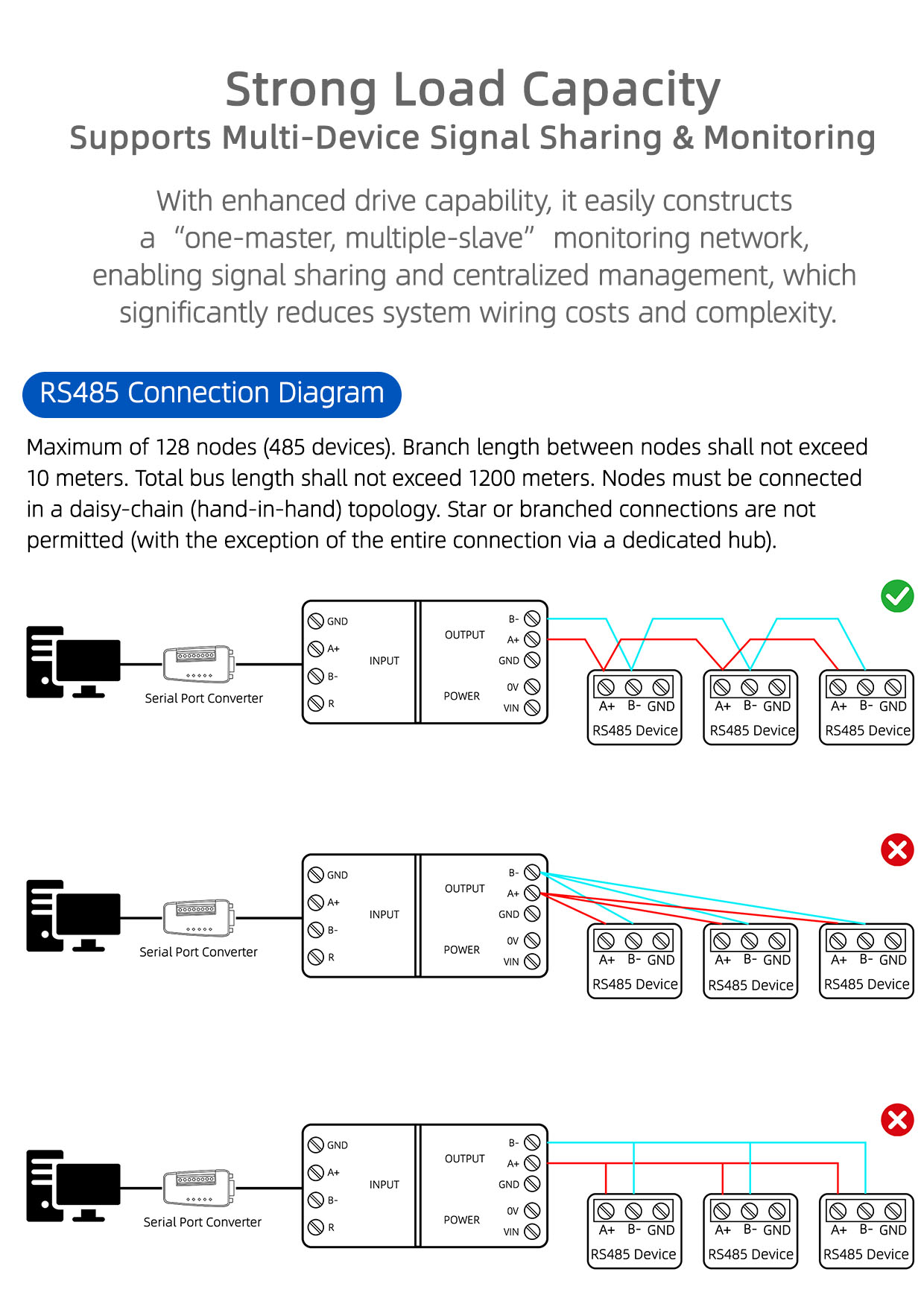 Cascade Capability Supports cascading of up to 128 RS485 devices