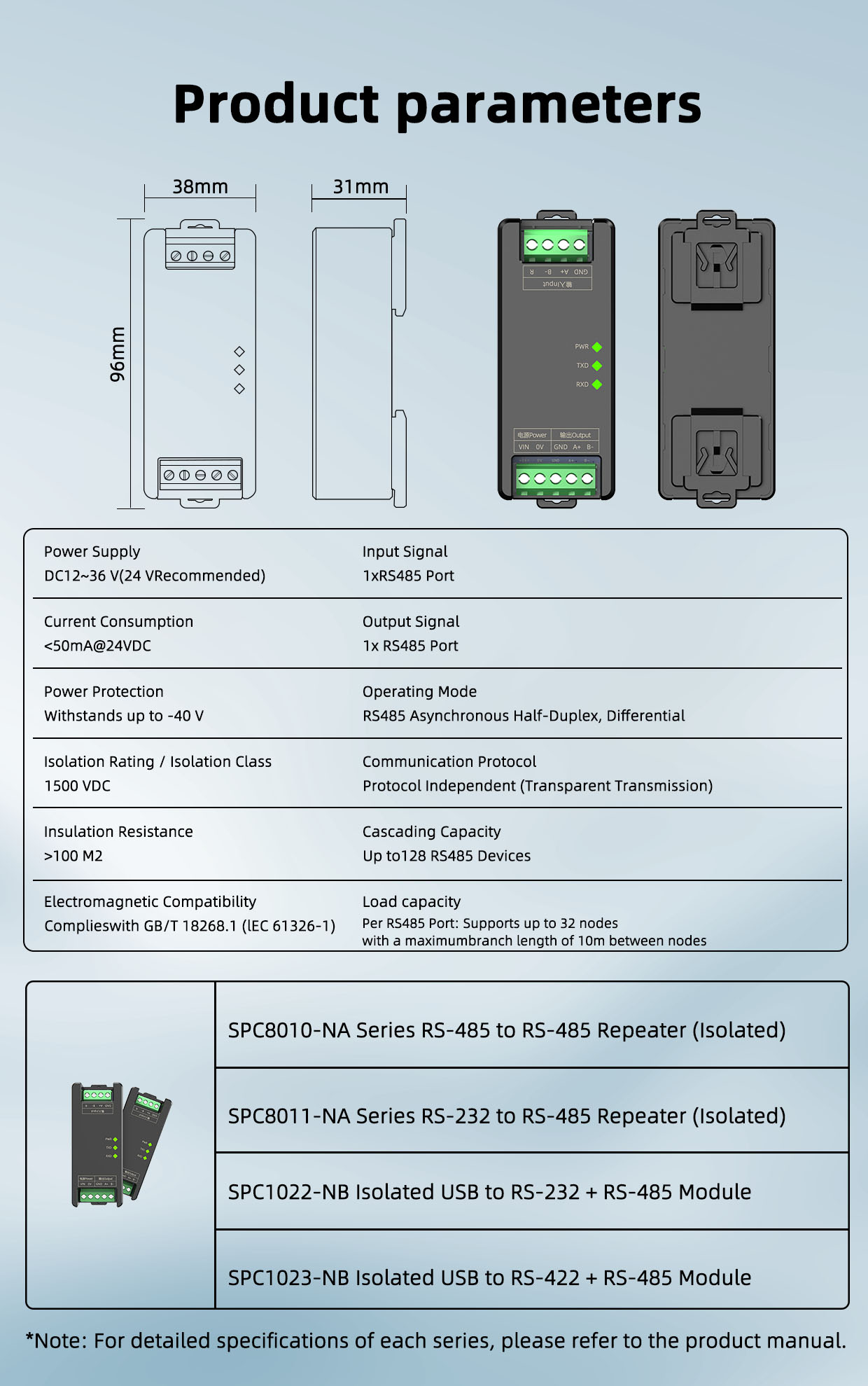 PDF>>> SPC8010-NA Series RS-485 to RS-485 Repeater Isolated Module User Manual v1.2