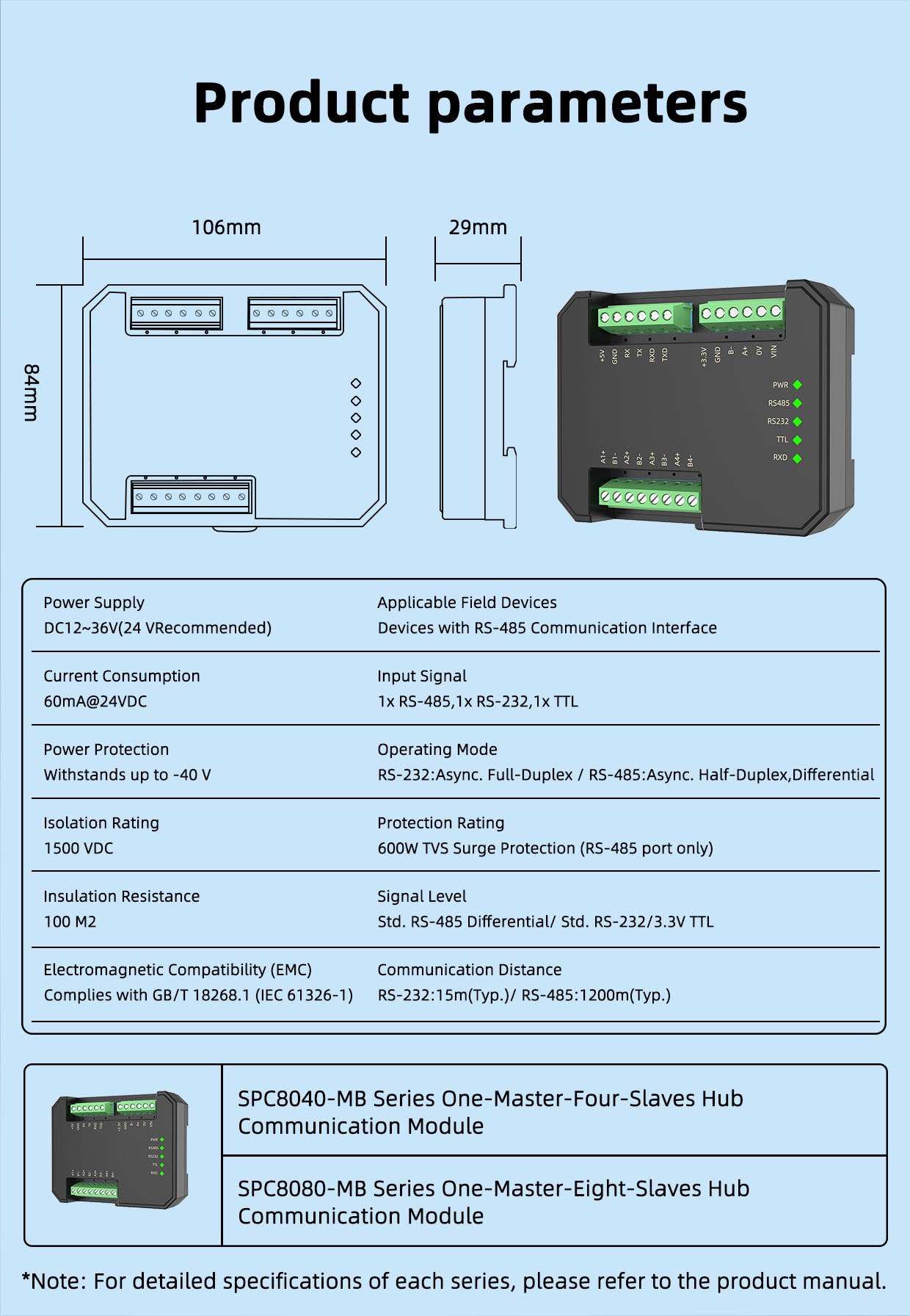 PDF>>> SPC8080-MB 1 Master to 8 Slave Hub Communication Module User Manual v1.2