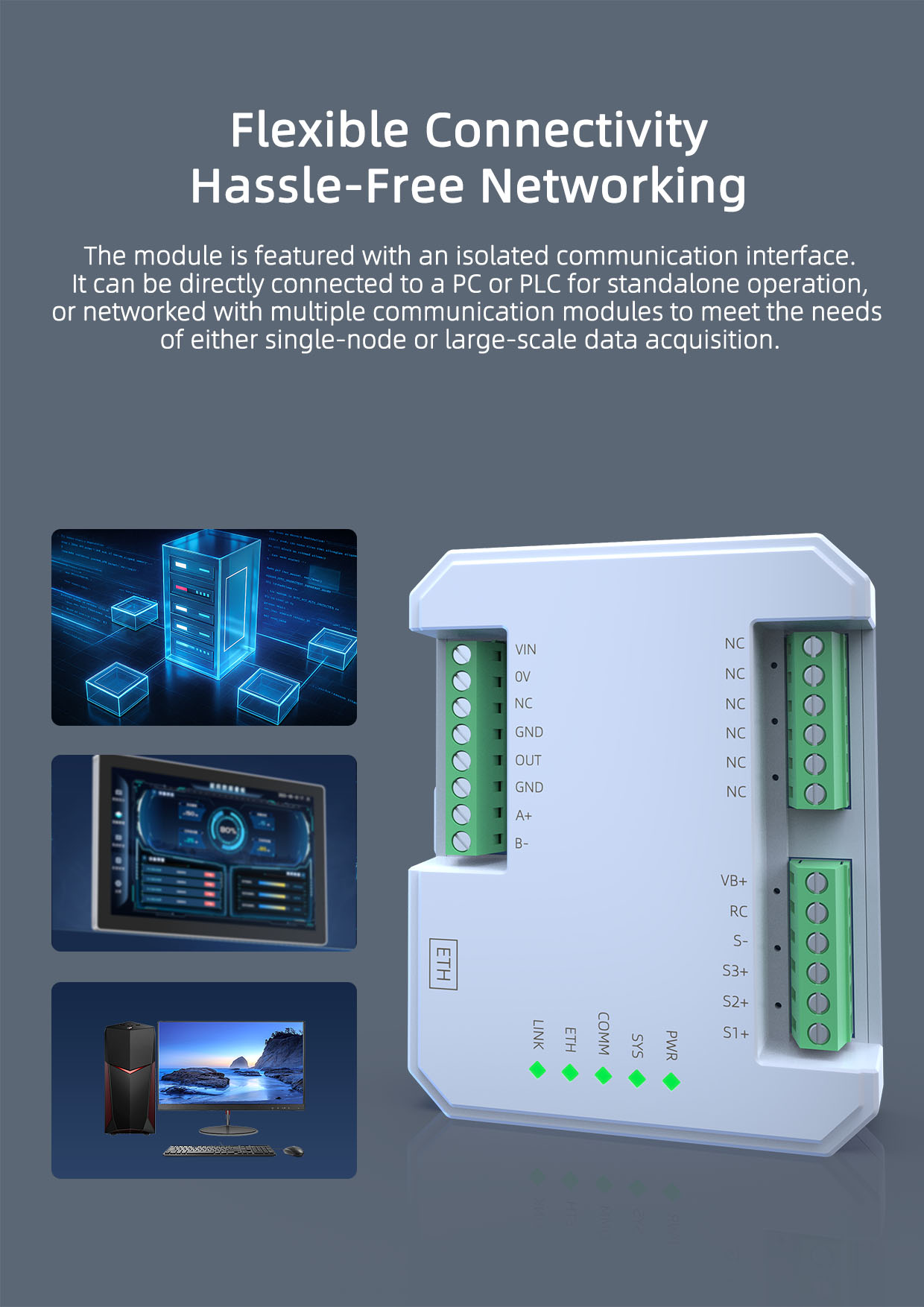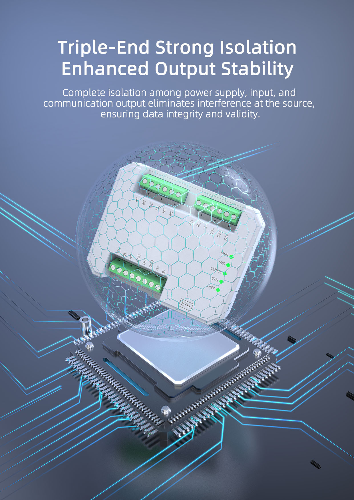 The SPE electrical energy signal data acquisition module is meticulously designed based on a new generation of embedded systems. Equipped with an isolated communication interface, it can communicate independently with a PC or PLC or be networked with multiple communication modules. It also features a transient suppression circuit that effectively suppresses various surge pulses, ensuring reliable operation in harsh environments.