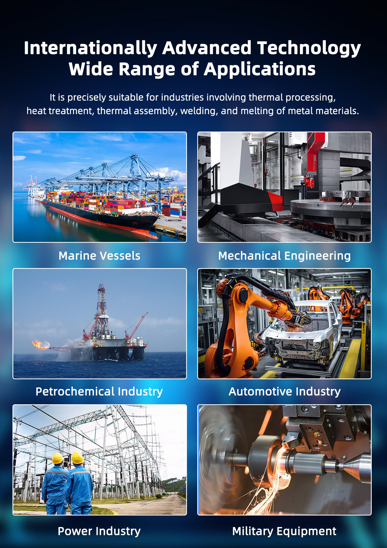 Sinepower has developed a variety of specifications of high-frequency, super-audio, and medium-frequency high-performance IGBT induction heating power supplies. It is widely used in the fields of automobile, construction machinery, machinery manufacturing, steel metallurgy, petrochemical, microelectronics, textile, military, wind power generation, shipbuilding and so on. Induction heating power supplies are widely used in surface treatment, heat treatment, quenching, tempering, annealing, diathermy, pipe bending, pipeline anticorrosion, quenching and tempering, forging and smelting.