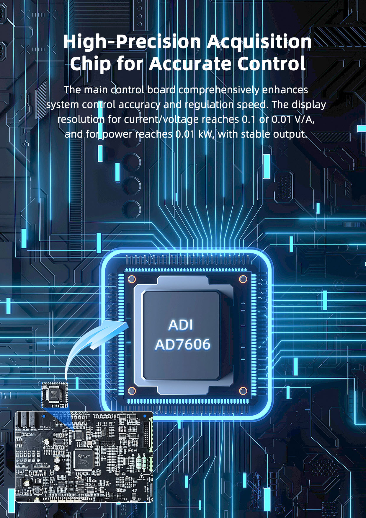 The DSP+CPLD mode is adopted to improve the response speed of the main control, improve the integration of the circuit, and further enhance the stability and anti-interference ability of the motherboard. It adopts the organic combination of touch screen control and direct hardware control. The interface method is improved, and the interface is more concise. The redundant interface that can be replaced is omitted, and the main functions of the previous version are integrated, so that the motherboard can be applied to both small and medium power and high-power equipment. It can be applied to ordinary power supply equipment, and can also be applied to other precision power supply equipment with high power factor requirements.