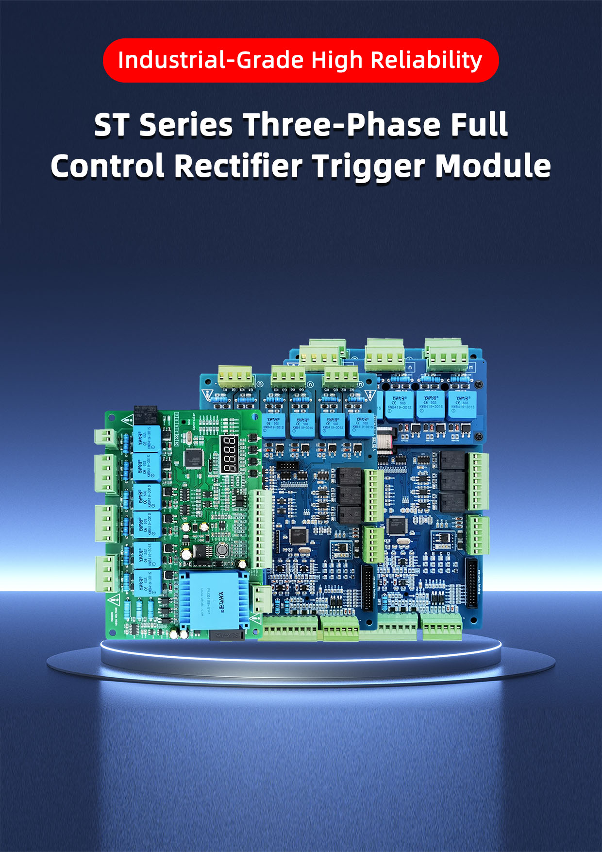 The ST31 three-phase rectifier thyristor trigger board is built around a 32-bit industrial-grade high-performance microprocessor, designed to meet highly digitized safety standards. It supports both network remote control and on-site control, with open Fuzzy-PID parameter adjustment. The board integrates three regulation modes—open-loop voltage regulation, closed-loop constant voltage, and constant current—enabling thyristor control for constant voltage with current limiting or constant current with voltage limiting.