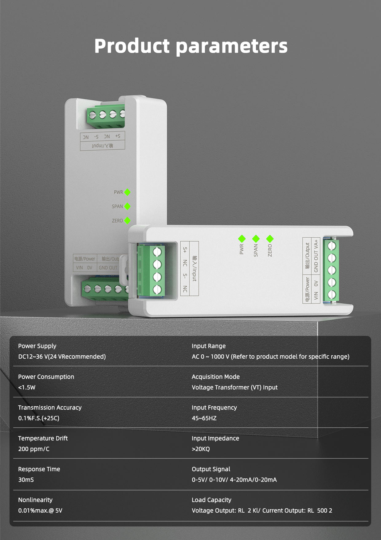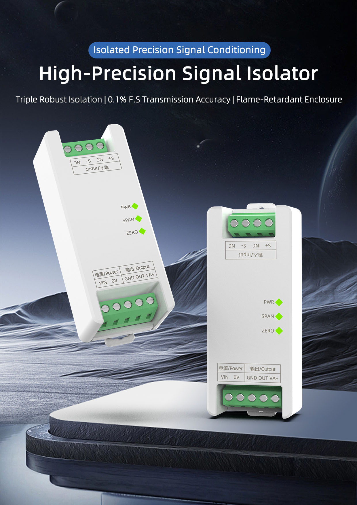 The SPS3-NC series shunt transmitter isolators feature a precision internal design, electrically isolating the power supply, input, and output. They offer high precision, high isolation, high speed, and low drift. They address common-mode interference, electrical isolation, and signal standardization issues during high-speed signal transmission from sensors, transmitters, or instruments. They are particularly suitable for high-speed transient waveform acquisition, harmonic analysis, and rapid monitoring and alarming.