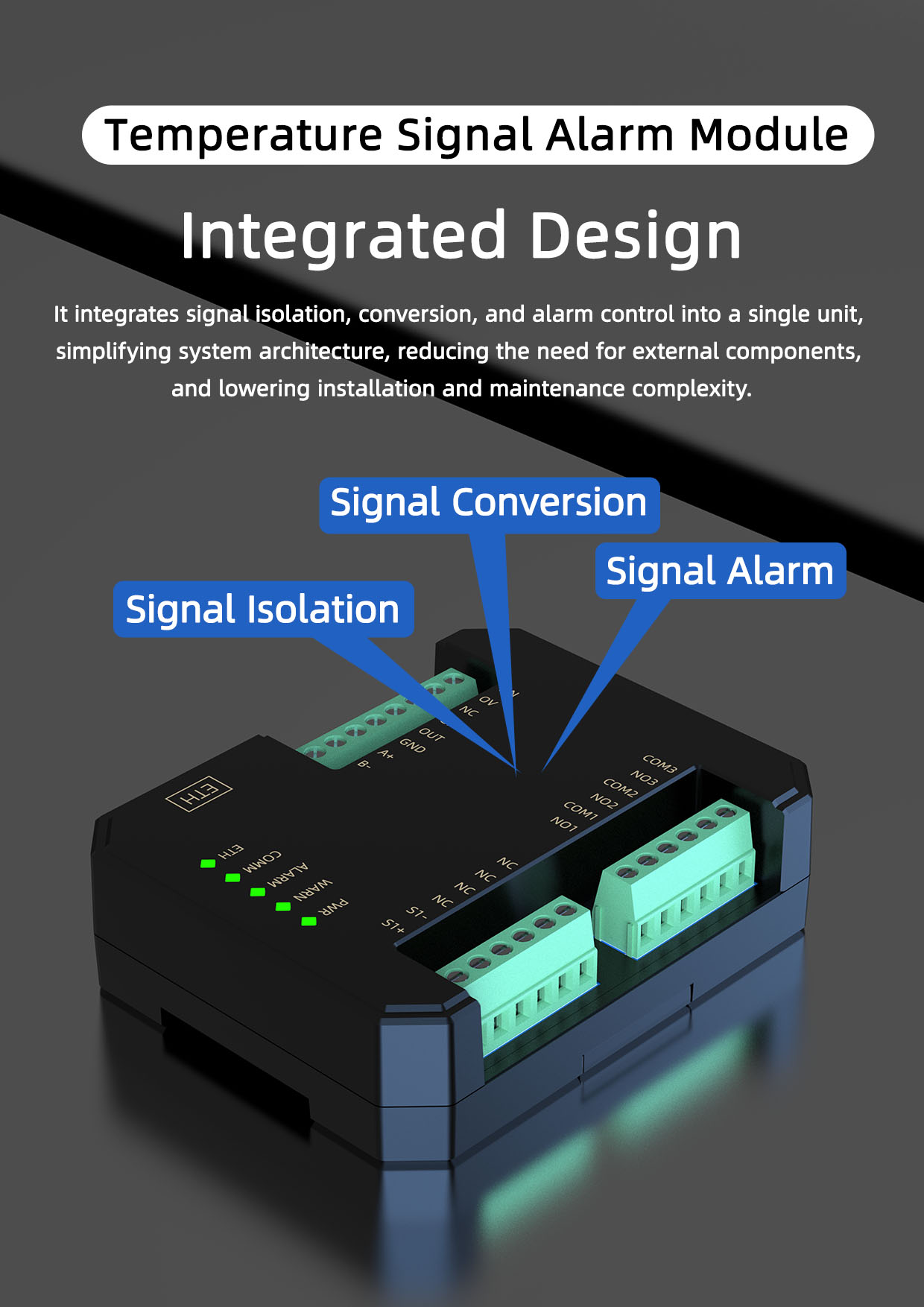 SPM Signal Monitoring Module is engineered with a new generation embedded system. It features an isolated communication interface, allowing it to communicate independently with a PC or PLC, or to network with multiple communication modules. The module is also equipped with a transient suppression circuit, which effectively suppresses various surge pulses and ensures reliable operation in harsh environments.