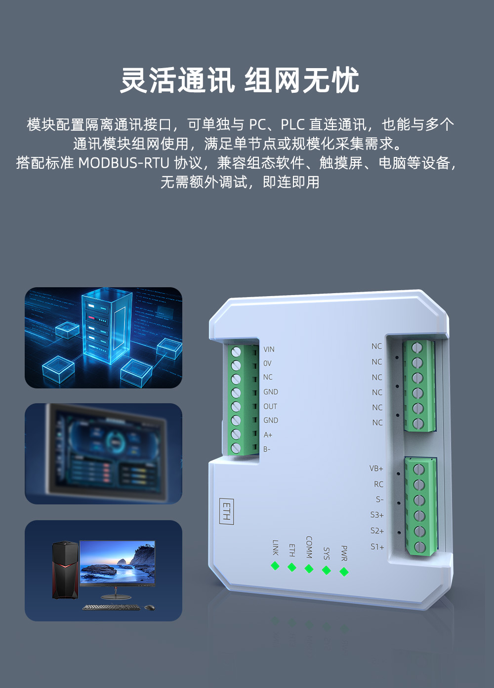 SPE电量信号数据采集模块基于全新一代嵌入式系统精工设计,模块配置有隔离通讯接口,可单独与PC或PLC通讯,也可以与多个通讯模块组网使用;同时模块配有瞬态抑制电路,能有效抑制各种浪涌脉冲,保护模块在恶劣的环境下可靠工作。