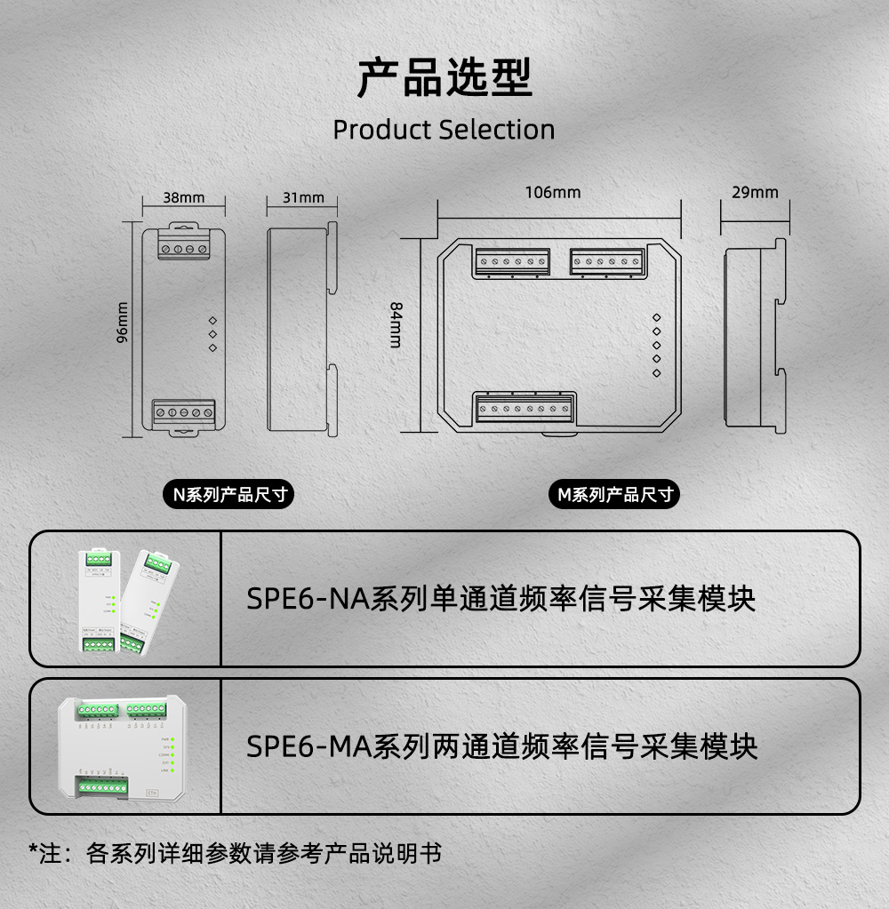 SPE6-MA系列频率信号采集模块,采集1/2路频率信号,配有RS485通讯接口,模块采用内部高精度计时器采集数据,分辨率高达16位,测量频率优于0.1%,电源、输入、通讯输出三者相互隔离,适用于采集工业现场的多种电能信号,能满足测量要求较高的工业现场、医疗电子、安防监控、智能楼宇、智能家居、电力监控、过程控制等场合。