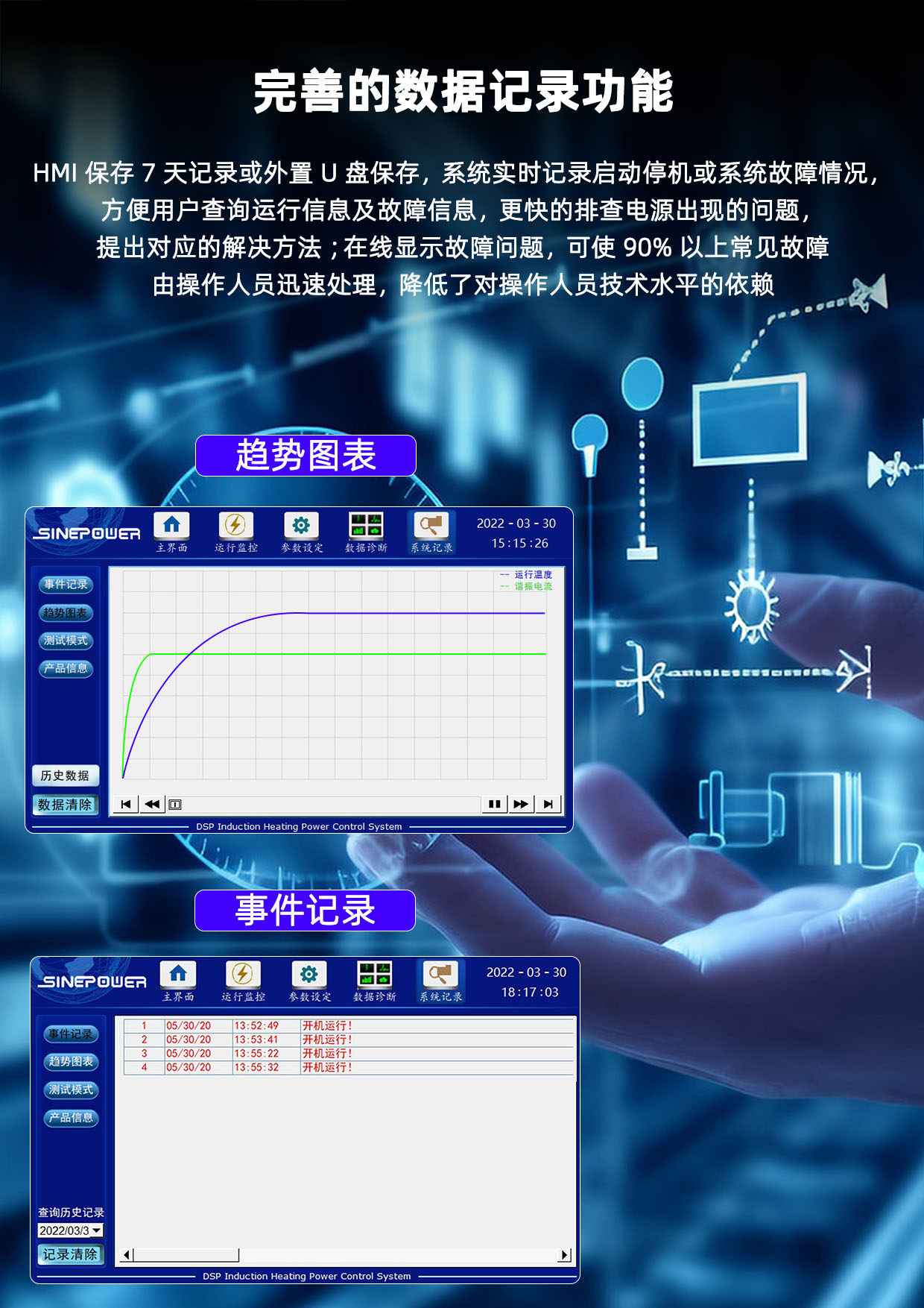 感应加热电源、 可控硅触发板、 充退磁控制器、 智能充电模块、 数据采集模块、 电量变送模块、 信号隔离器、 隔离安全栅
