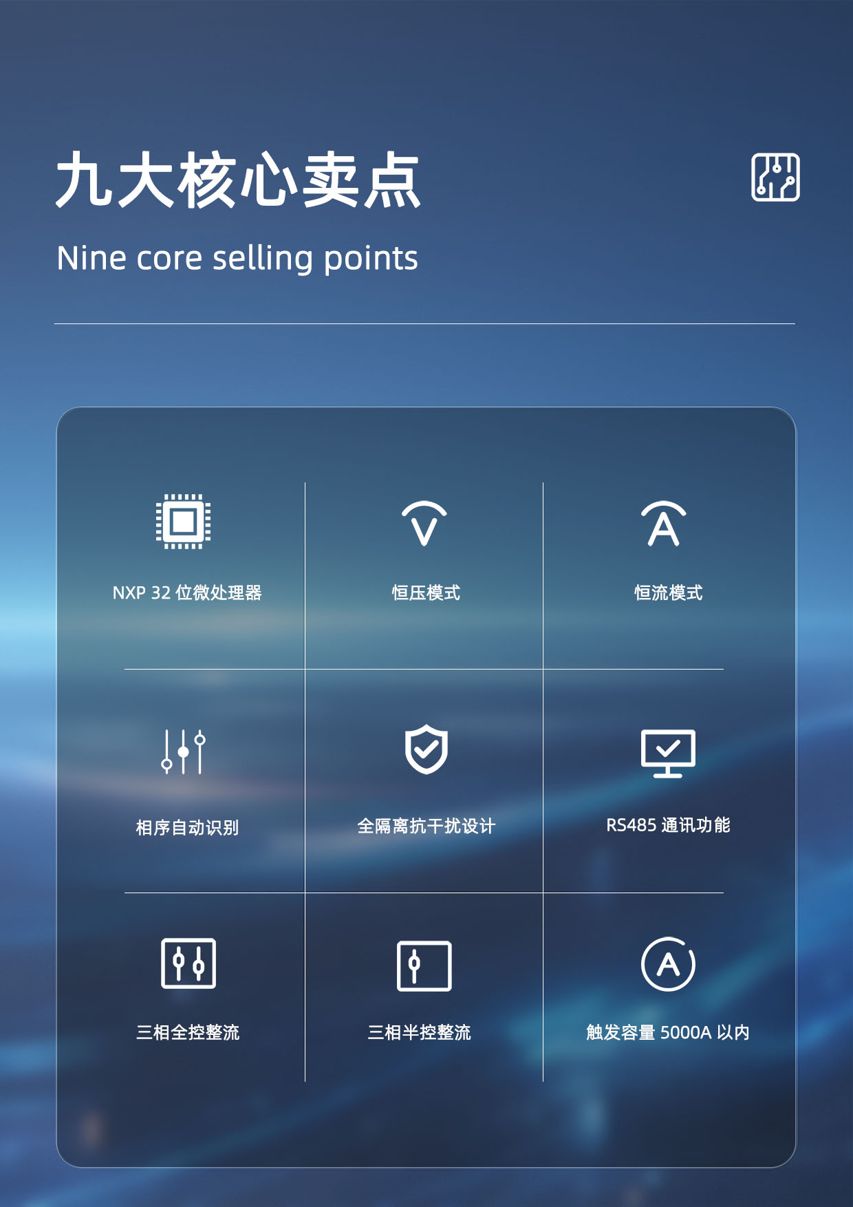 ◆ 三相触发不平衡度:≤ 0.3°