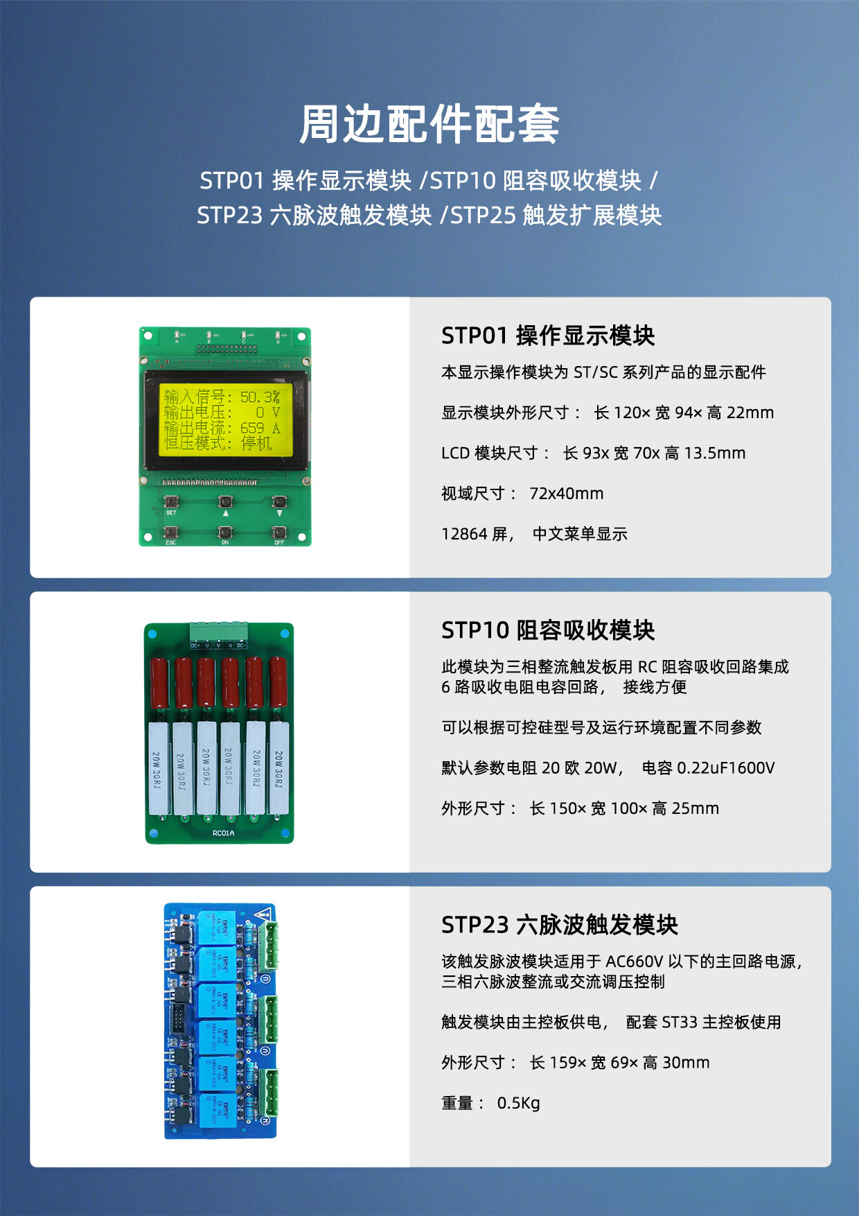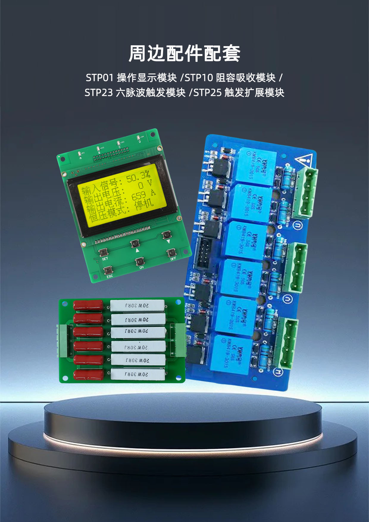 如果大功率需要多个可控硅并管使用,则可以使用扩展板STP25,一拖多个STP23