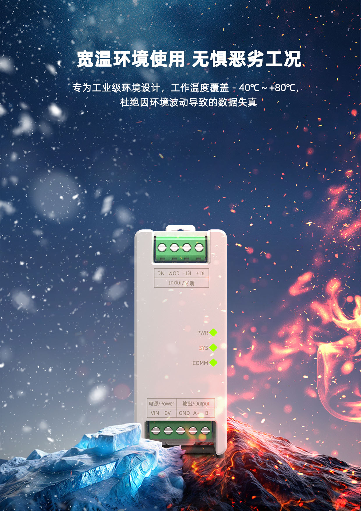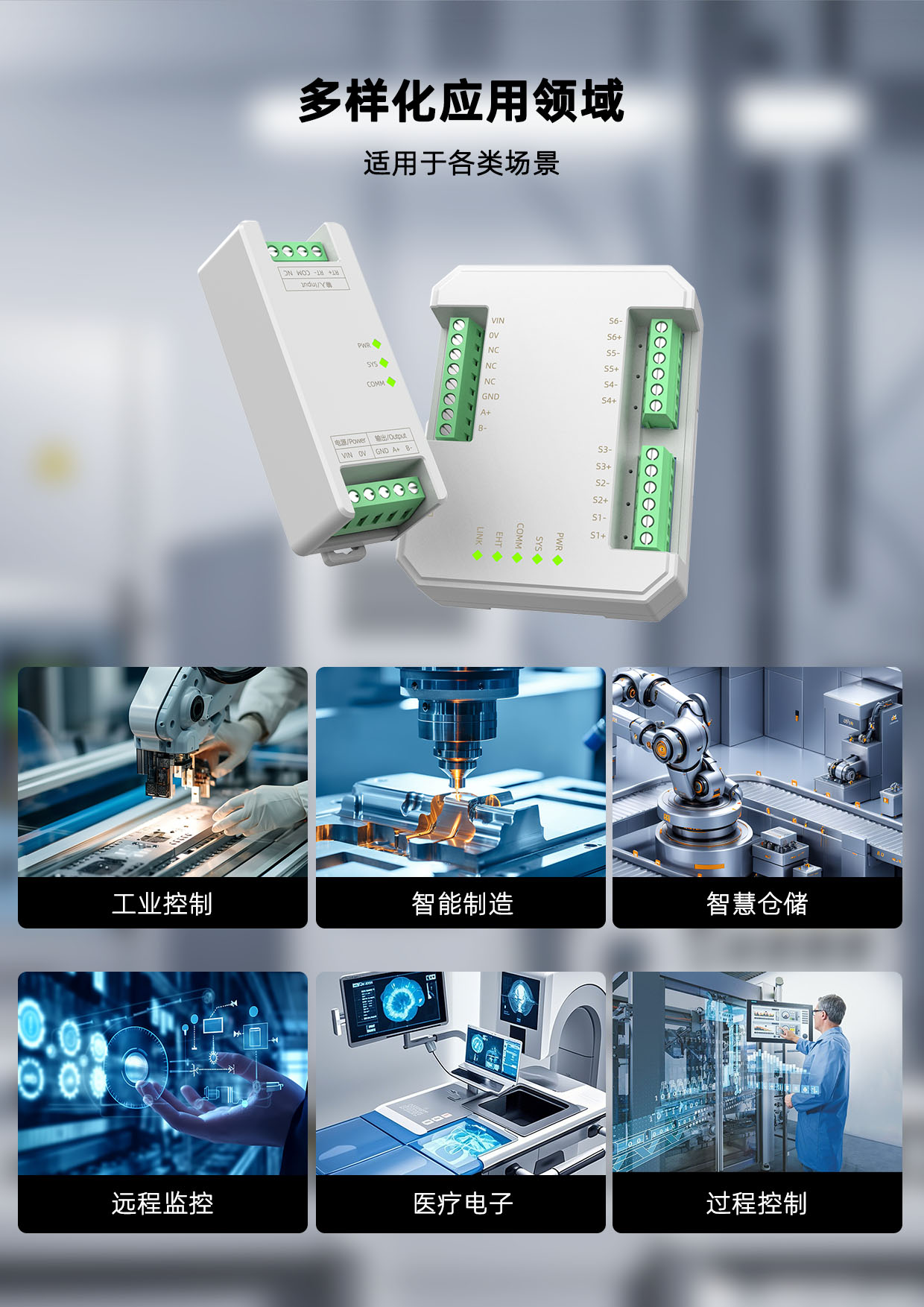 该产品需要独立供电,采用DIN35mm标准导轨安装方式,现场安装简单,使用灵活,可应对各种现场应用。