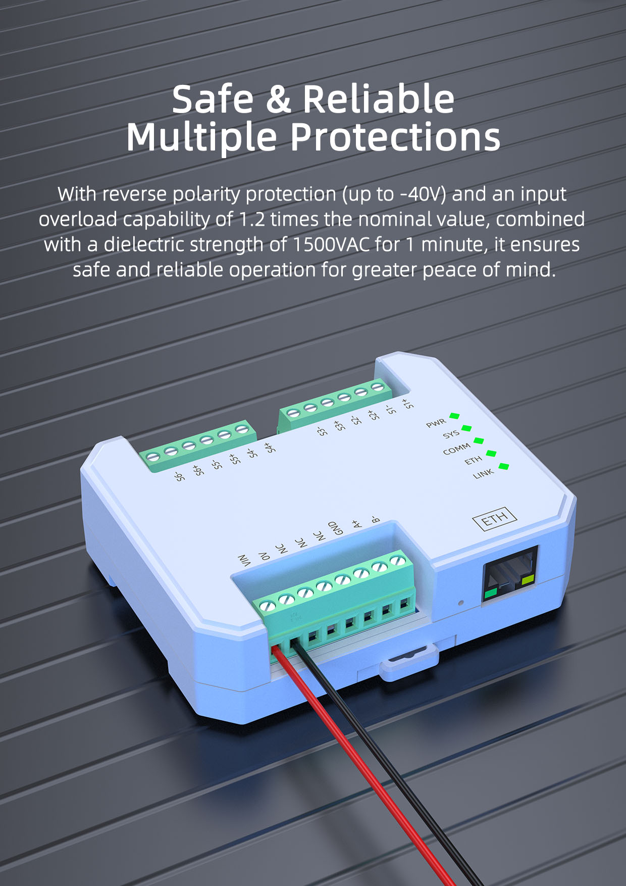 This product requires independent power supply and uses a DIN35mm standard rail mounting method. Field installation is simple, usage is flexible, and it can handle various field applications.