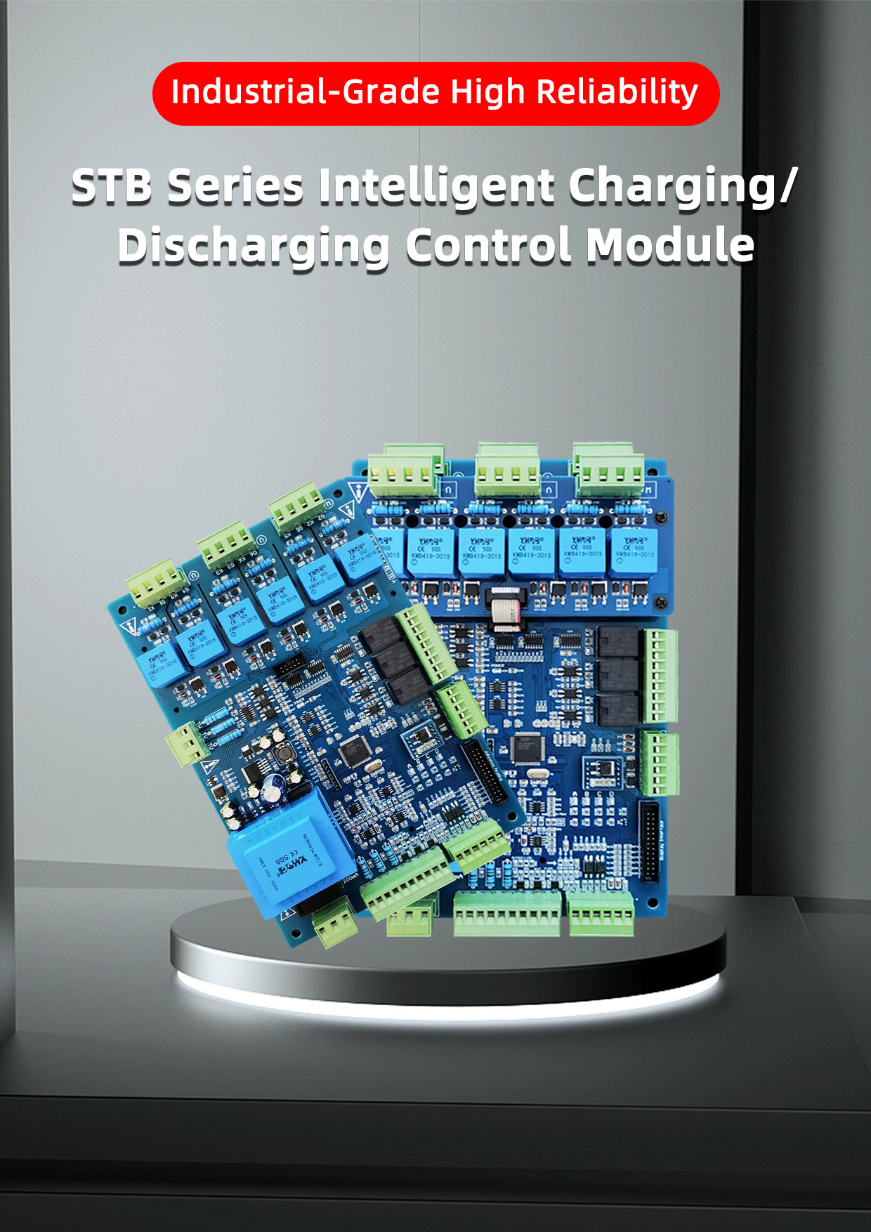 STB65 battery charge control trigger board adopts 32-bit industrial grade high-performance microprocessor, highly digital military quality design, supports network remote control and on-site control mode. The fuzzy-PID parameter is open-ended, fault alarm and parameters are displayed on the LCD screen or touch screen menu Chinese, parameters are automatically saved after setting. With constant voltage and constant current regulation, the charging operation parameters are set by the LCD screen. The charging phase can be set up in four stages, each stage are set independently: charging current, charging voltage, current limit, charging time and jump voltage, support one-stage discharge parameter setting, users can set the charging parameters of pre-charging, fast charging, slow charging or floating charging according to the current battery charging curve freely. The operation is reliable, technology is advance, functions are complete, performance is stable, debugging is convenient and easy to maintain.