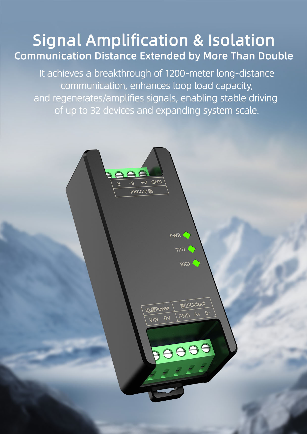 Cascade Capability Supports cascading of up to 128 RS485 devices