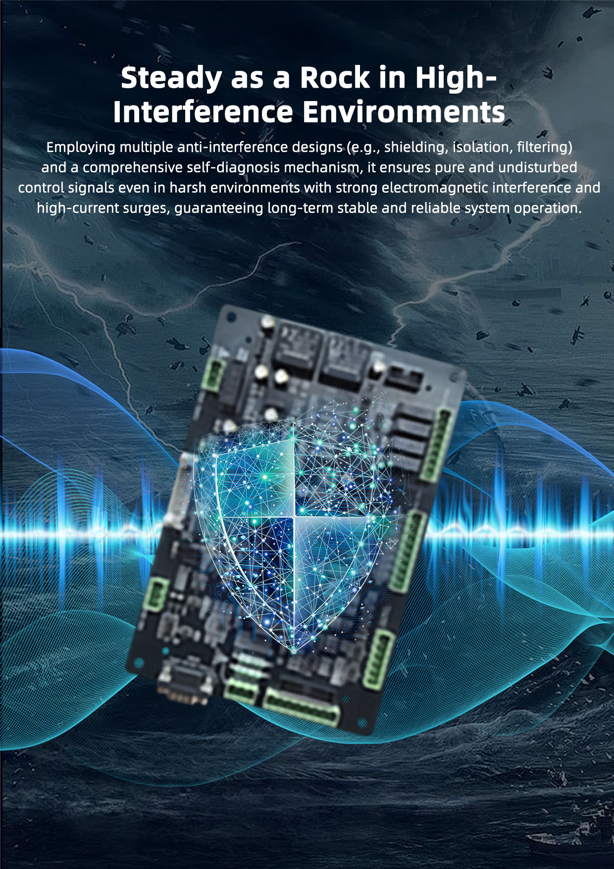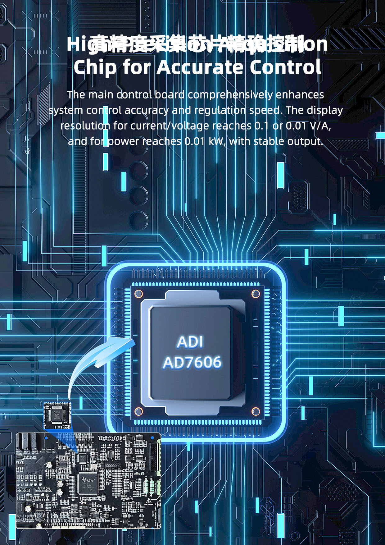 The main control card continues to lead the innovation of the core control algorithm and software technology in the industry. The structure and operation processing speed of the control software package can ensure the adjustment of all control loops finish quickly. Meanwhile, it has good reliability and strong anti-interference ability, with unique anti-interference measures, it can be operated normally in harsh interference environment. The input and output are all isolated, and the scope of application is wide. It has perfect fault detection, alarm indication, and protection function. All parameters are digital, no temperature drift changes, which will improve the adjustment accuracy and power utilization efficiency.