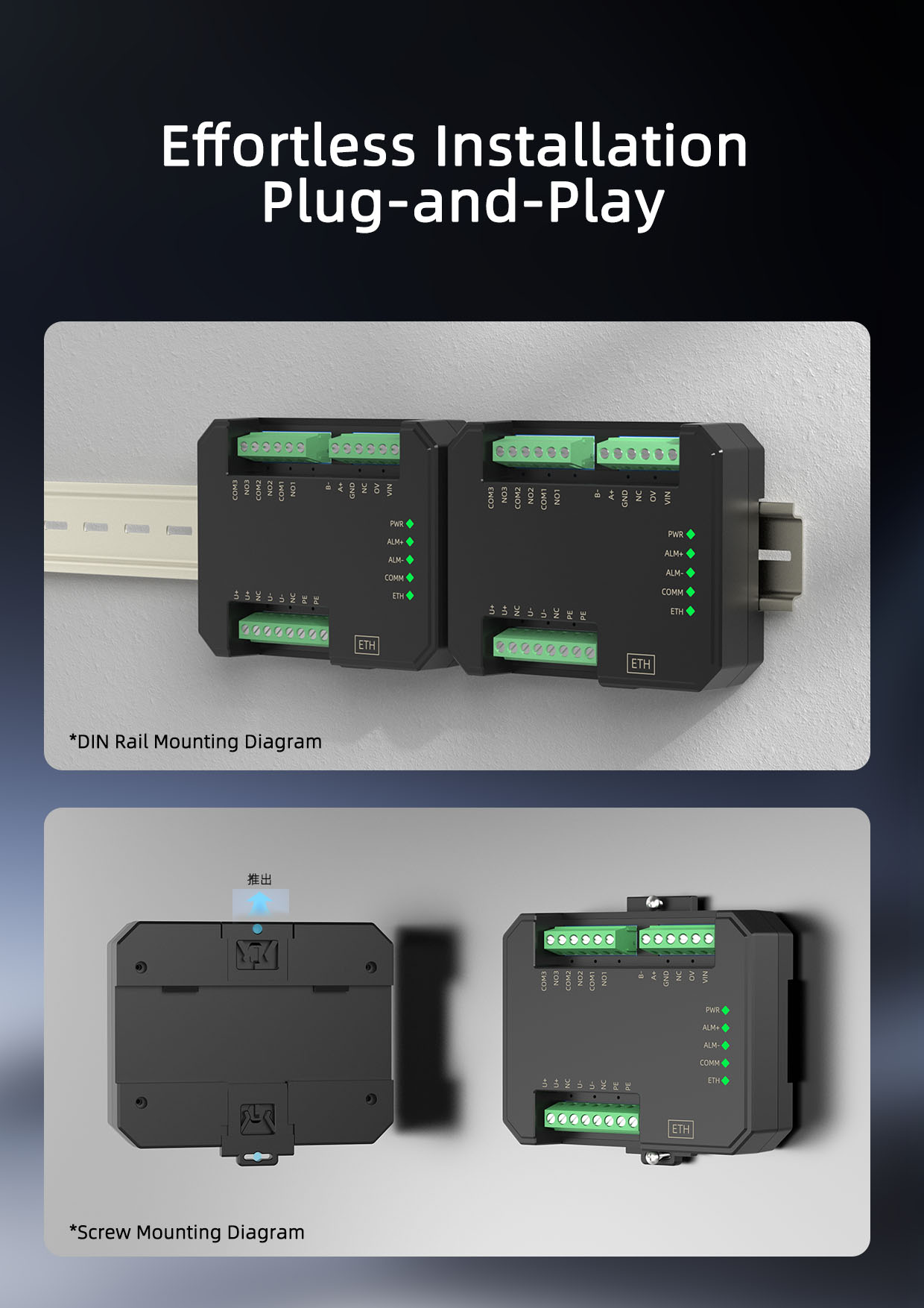 This product requires an independent power supply and utilizes a standard 35mm DIN rail for mounting, offering simple installation and flexible use, adapting to a variety of field applications.