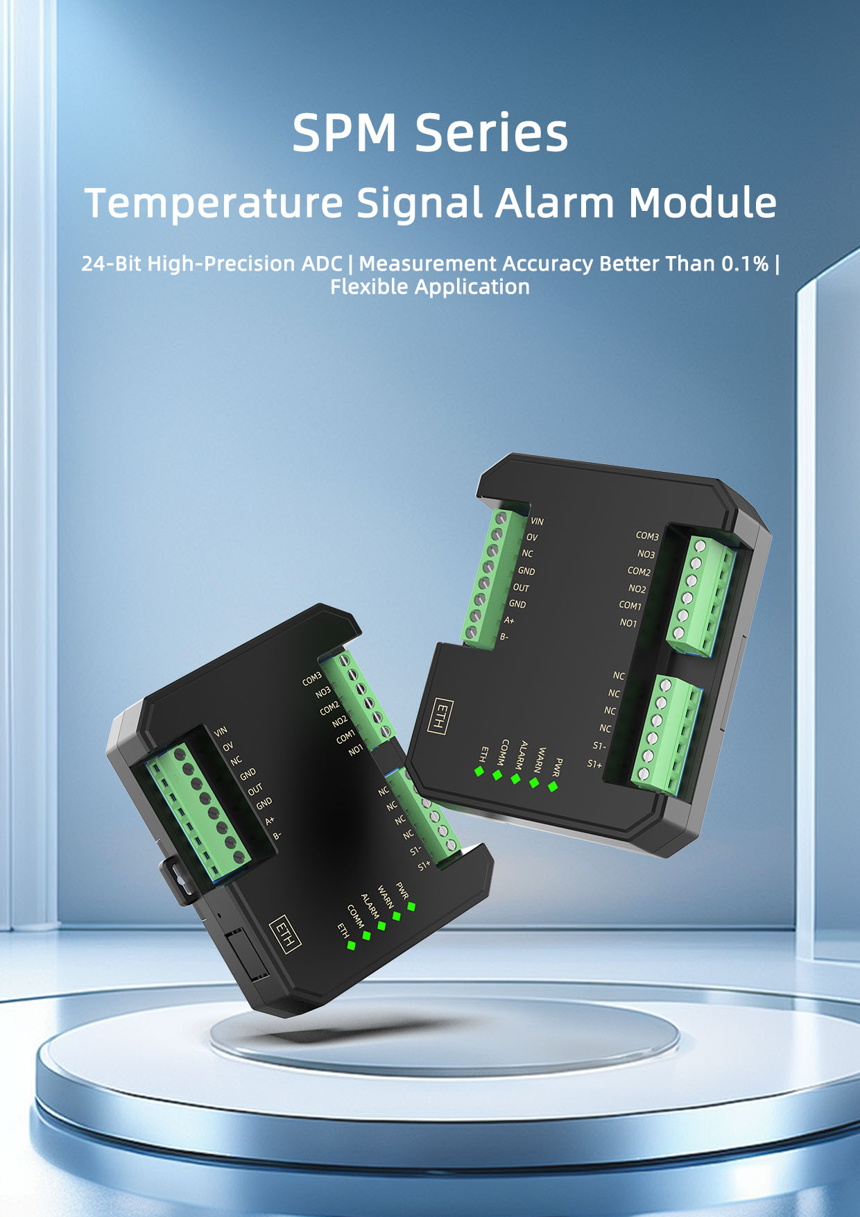 SPM Signal Monitoring Module is engineered with a new generation embedded system. It features an isolated communication interface, allowing it to communicate independently with a PC or PLC, or to network with multiple communication modules. The module is also equipped with a transient suppression circuit, which effectively suppresses various surge pulses and ensures reliable operation in harsh environments.