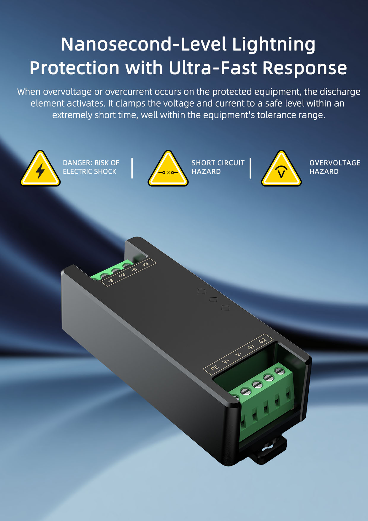 The SPM9620 module incorporates a coordinated design of high-performance protection devices including MOVs, PPTCs, GDTs, and TVS. Combined with a protection structure featuring low let-through voltage and high energy absorption, it ensures that surge voltages are clamped to a safe range within milliseconds. With nanosecond-level response speed and high impact resistance, it significantly reduces equipment failure rates in harsh grid environments or industrial settings with frequent start-up/shutdown of high-power equipment. This extends the service life of control systems and ensures production continuity and operational safety.